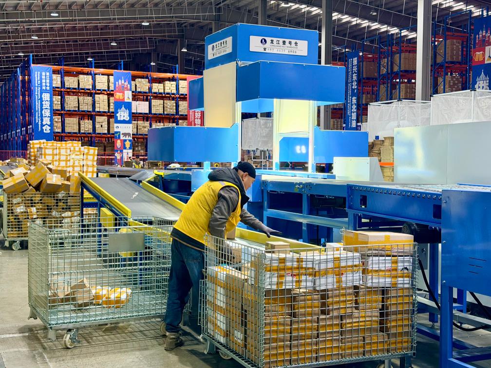 正在省主要港口城市绥芬河,天府盛俄品龙江壹号仓一派忙碌气象,这里集结着琳琅满目标进口商品,工做人员忙着打包快递,将其发往全国消费者手中。记者留意到,每件进口商品的外包拆上。